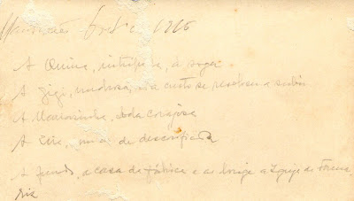 Na foto surgem suas tias Elzira, Maria, Jerónima e Joaquina, filhas do ilustre Bernardino Machado, vestidas com trajes de lavradeira minhota, junto à Ponte de Mantelães em Formariz. No verso da fotografia está escrito: “Mantelães Out. 1916/ A Quina (Joaquina), intrépida, à soga/ A Gigi (Jerónima), esposa de Aquilino Ribeiro), medrosa, só a custo se resolveu a subir/ A Mariazinha toda corajosa/ A Zira (Elzira), com ar de desconfiada/ ao fundo, a casa da fábrica e ao longe a Igreja de Formariz”.